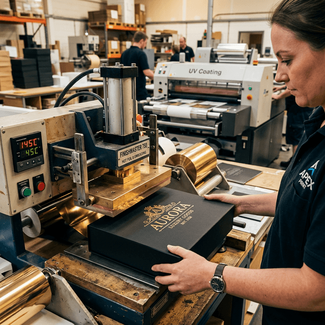 Cán mờ, cán bóng, ép kim nóng, dập nổi/chìm, bế dán, phủ UV — hoàn thiện sản phẩm.